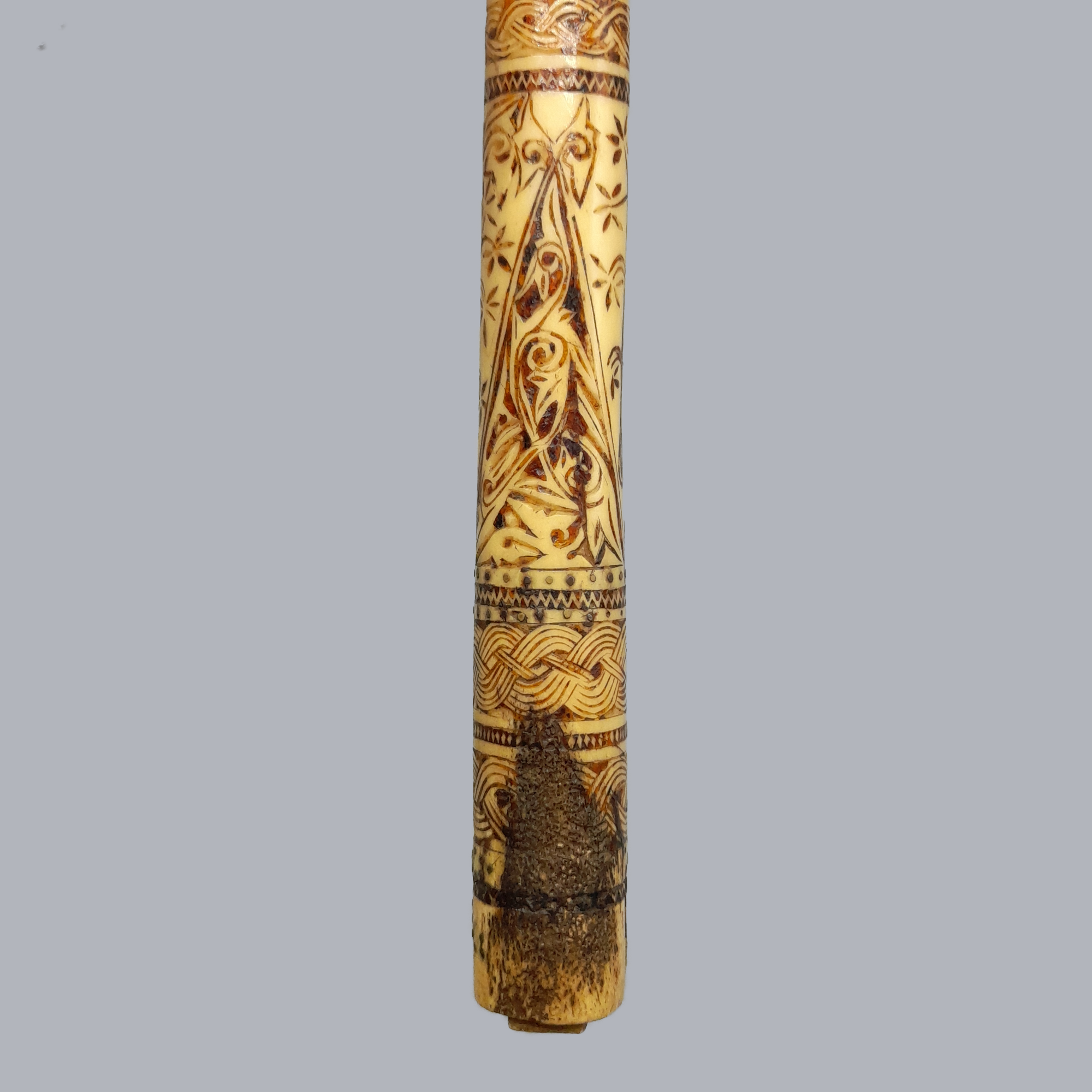 The adze is in a very good antique condition with minor signs of wear from usage. The bottom of the bone handle is slightly damaged or worn.