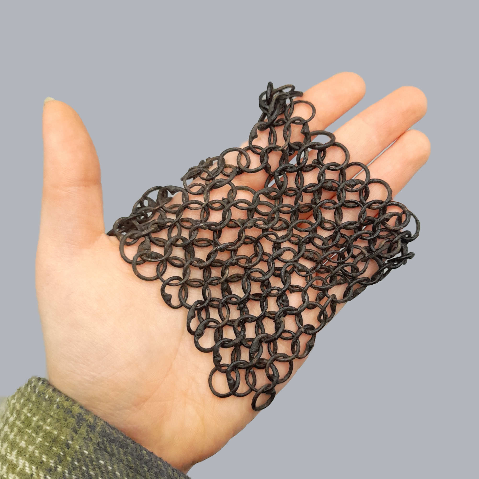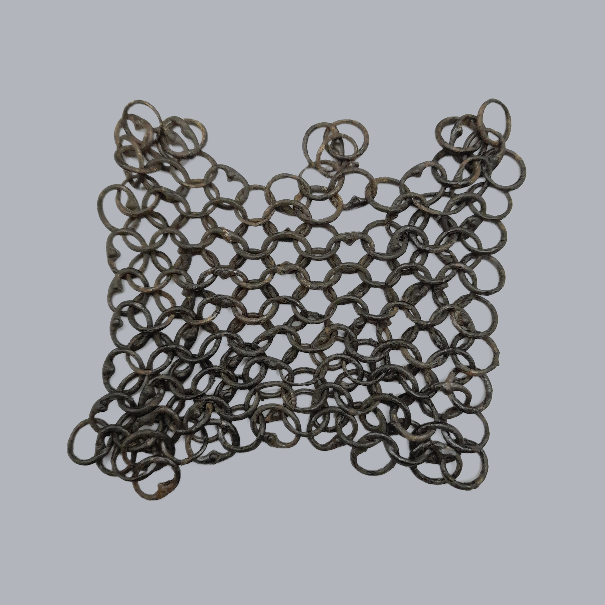 An original European mail patch made of small-sized riveted rings of 5-7 mm in diameter. The patch originates from a part of a mail sleeve.