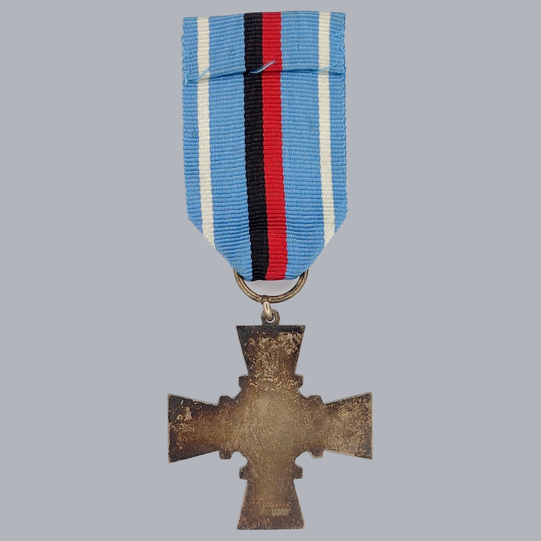 An original Finnish WWII medal, the commemorative cross of the 8th Division (8. Divisioonan risti), awarded for the merits of the Finnish Continuation War (1941-1945). The medal is of black-oxidized tombac, attached with the fabric ribbon.