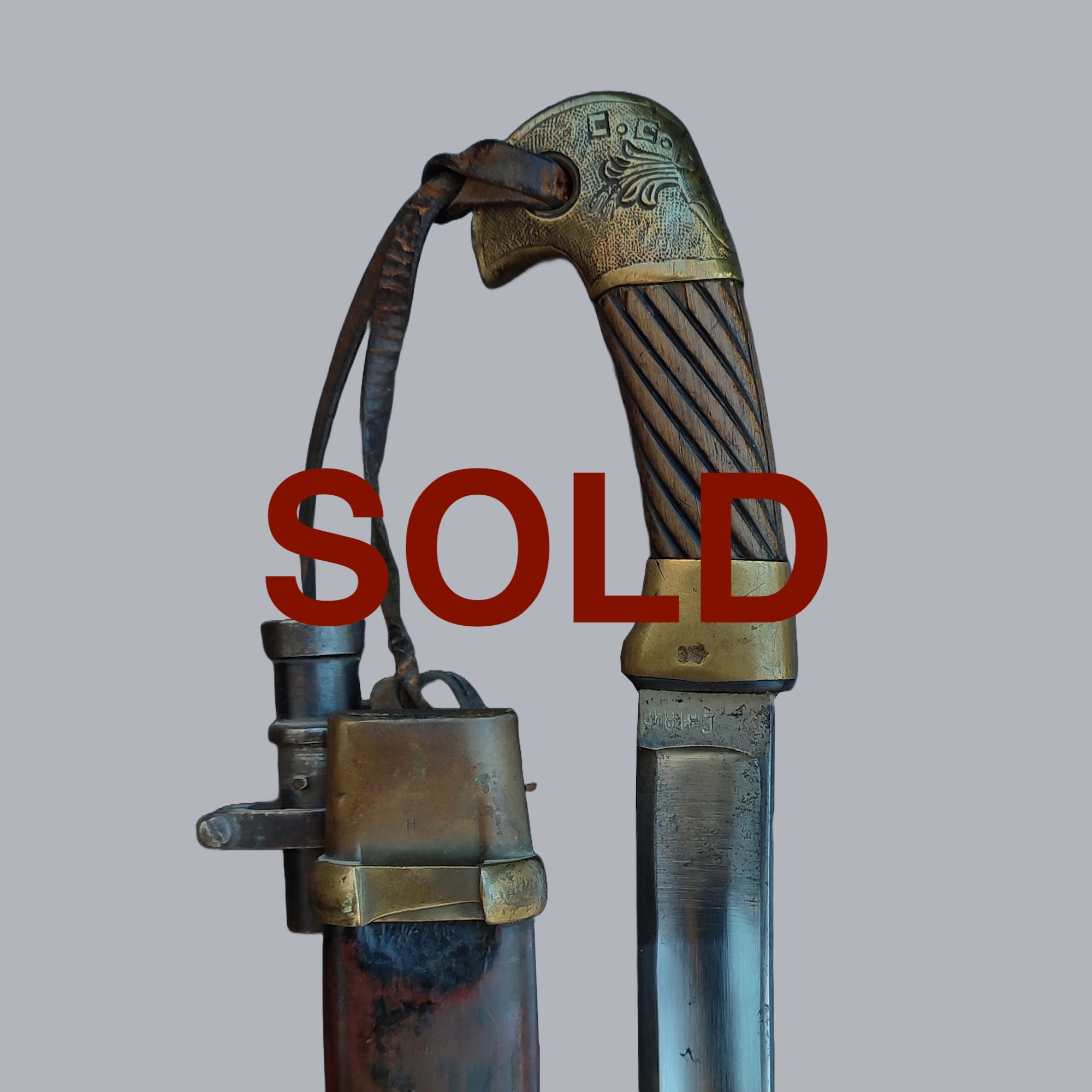 Soviet Russian Shashka model M/1927 dated in 1930 with the M/1891 bayonet attached. Sabre manufactured by the Zlatoust Arms Factory. Good condition.