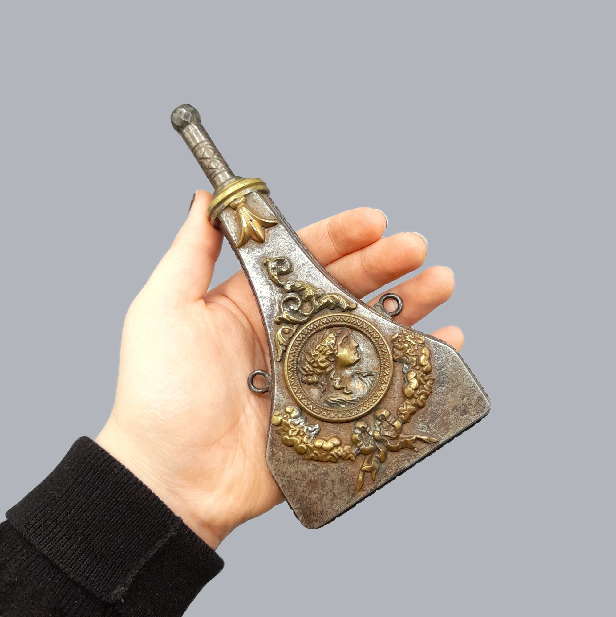 DECORATIVE IRON POWDER FLASK