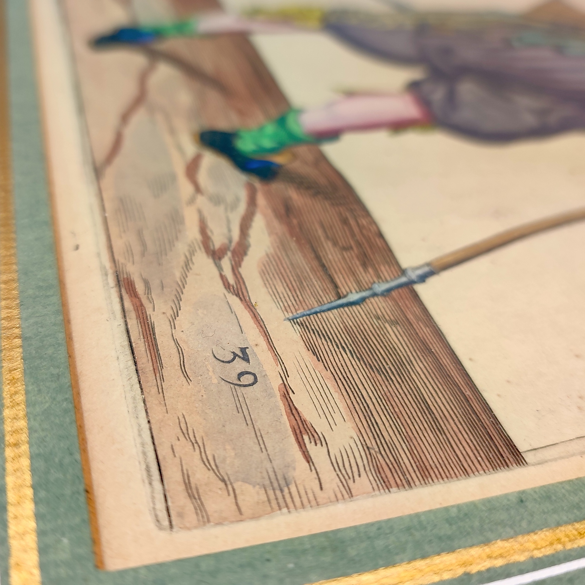 HAND-PAINTED PRINT OF A MUSKETEER FROM JACOB DE GHEYN II WAPENHANDELINGE